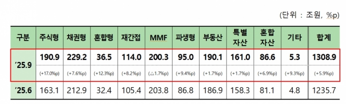 2025년 3분기 기준 유형별 펀드 순자산총액. /자료=금융투자협회 |