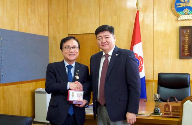 서울시의회 강석주 의원(국민의힘·강서2)이 최근 산다그오치르 몽골국회 운영위원장으로부터 외국인에게 수여되는 최고 권위의 ‘훙테트 템데그’ 훈장을 전수받았다고 28일 밝혔다.