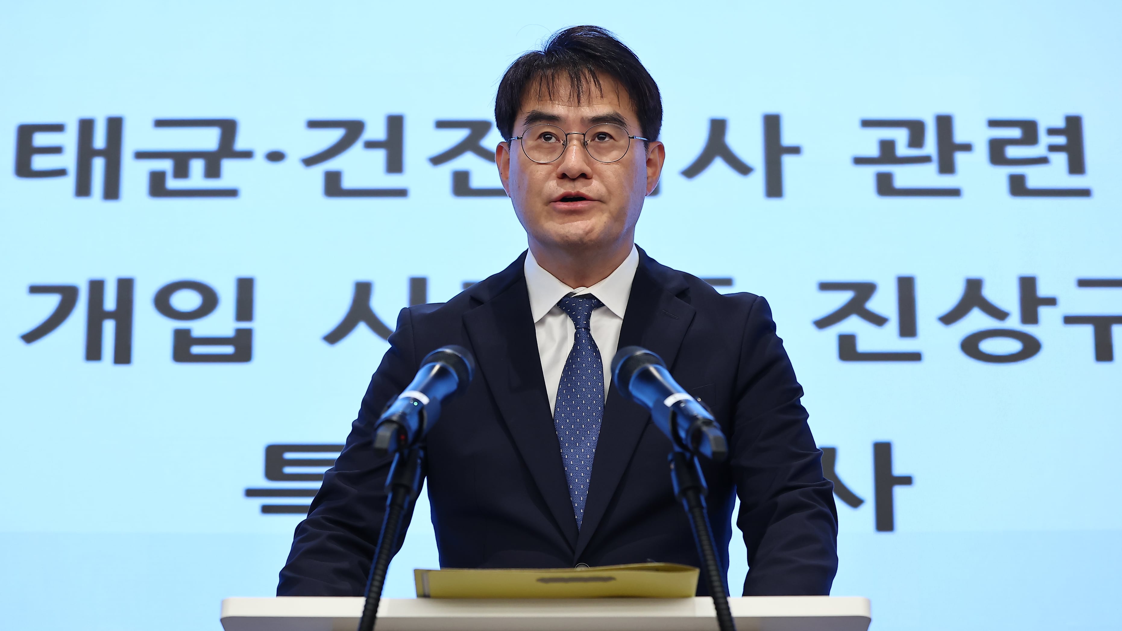 윤석열 전 대통령 부인 김건희 여사 관련 의혹을 수사하는 민중기 특별검사팀 김형근 특검보가 지난달 5일 오후 서울 종로구 KT광화문빌딩에 마련된 특검 사무실에서 정례 브리핑을 하고 있다. /뉴스1 |