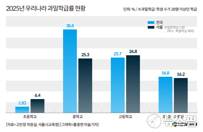 2025년 우리나라 과밀학급률 현황. [사진=홍종현 미술기자] |