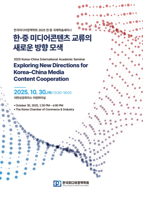 한국미디어정책학회는 30일 서울 대한상공회의소에서 '한·중 미디어콘텐츠 교류의 새로운 방향 모색'을 주제로 한·중 국제학술세미나를 개최한다고 29일 밝혔다.