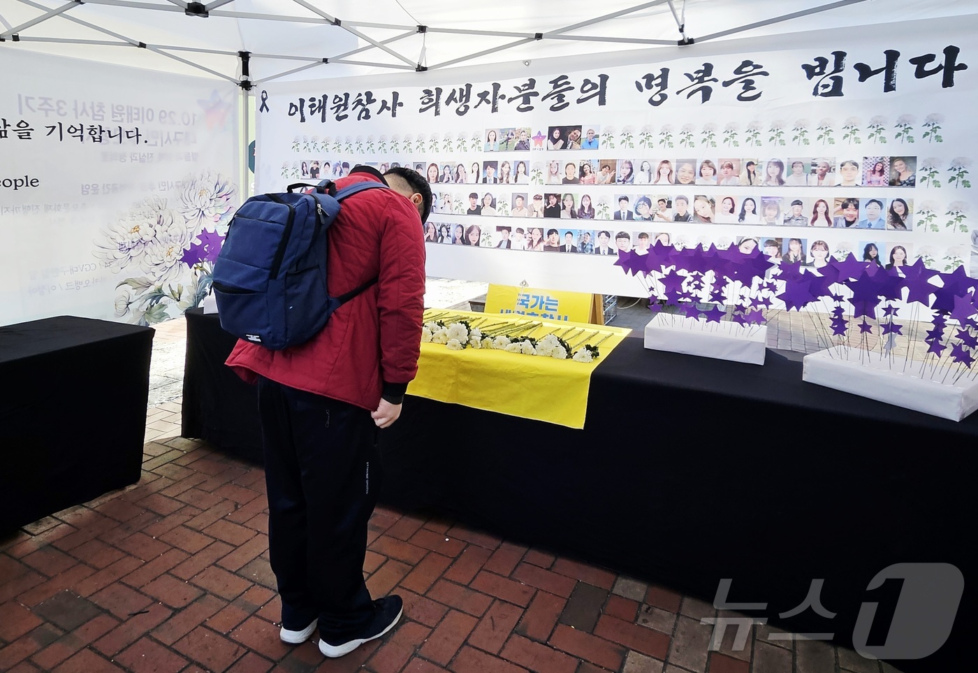 (대구=뉴스1) 남승렬 기자 = 159명이 목숨을 잃은 '10·29 이태원 참사' 3주기인 29일 대구 도심에도 참사 희생자들을 애도하고 추모하는 공간이 마련됐다.