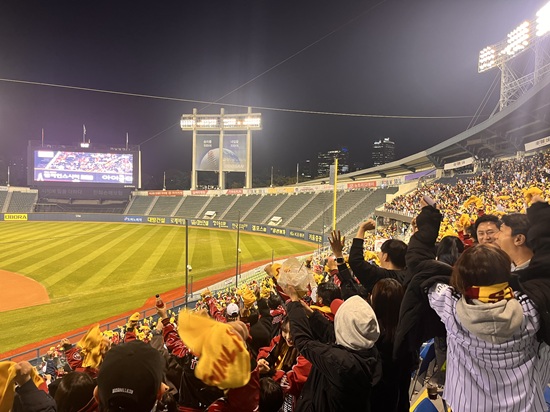 같은 날 대전 한화생명볼파크에서 열린 한국시리즈 3차전에 총 1만 6750명 만원 관중이 들어찼다. 거기에 버금가는 인원이 잠실 원격 응원전에 참석한 셈이다.