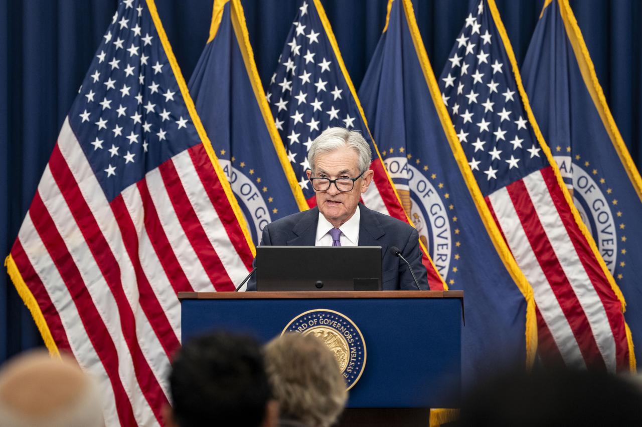 제롬 파월 연방준비제도(Fed) 이사회 의장이 29일(현지시간) 워싱턴 D.C. 연방준비제도 본부에서 열린 기자회견에서 올해 두 번째로 금리를 0.25%포인트 인하한다고 발표했다. [UPI] |
