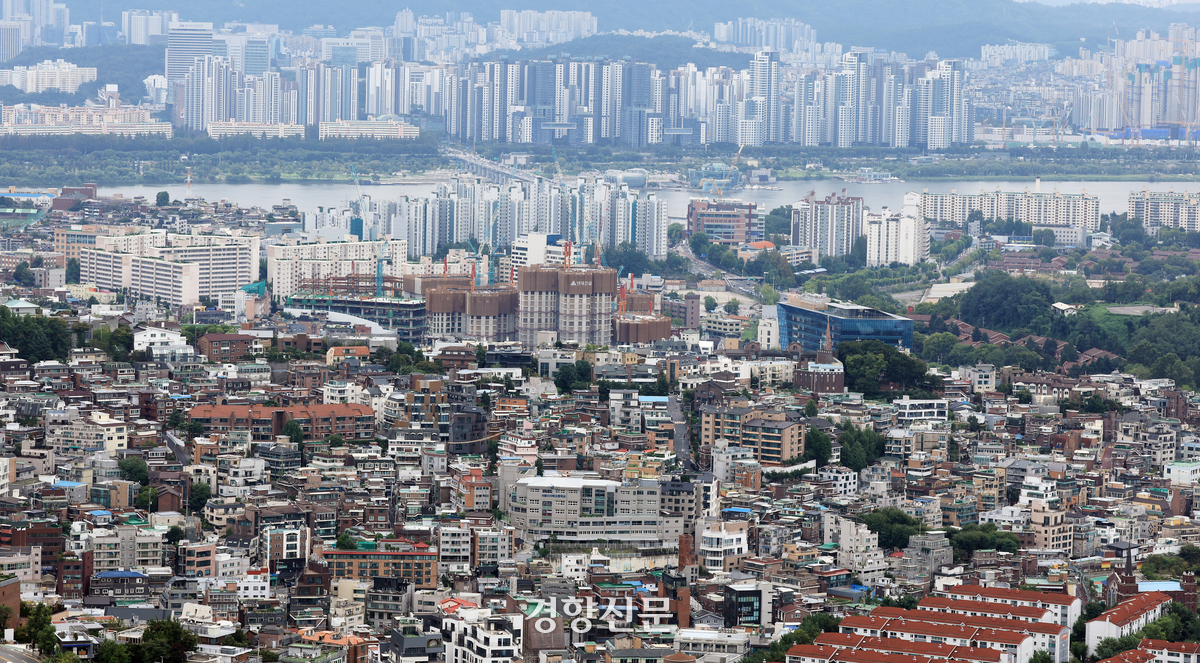 정부가 주택 공급 확대 방안을 발표한 지난달 7일 서울 남산전망대에서 바라본 서울 용산 일대의 주택가와 반포대교 너머 강남 아파트 단지. 서성일 선임기자 |