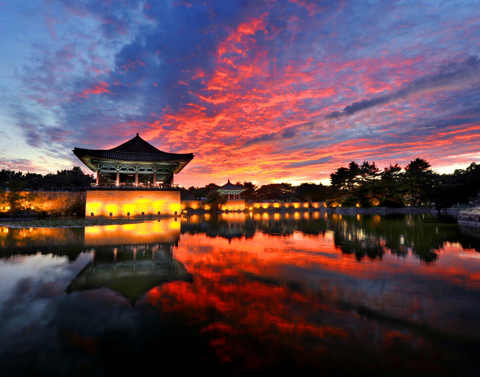 신라 왕실의 별궁터였던 동궁과 월지는 태자가 머문 동궁과 통일신라 문무왕 14년에 조성한 연못 월지로 구성돼 있다. 정교한 건축 양식과 자연과의 일치를 추구하는 정원 철학이 돋보인다. 월지는 ‘삼국사기’에 기록이 있다. ‘동궁에 아름다운 연못을 파고 산을 만들어 화초를 심었다’고 말이다. 676년 삼국을 통일한 신라는 높아진 국가 위상을 널리 알리기 위해 화려한 건축물 건립이 절실했다. 동궁과 월지 탄생 배경이다. 국가의 기쁜 일이 있거나 귀한 손님이 오면 화려한 연회를 연 데가 이곳인 이유다. 1970년대 청자, 백자, 금제 장식품 등 유물 3만여점이 출토됐다.