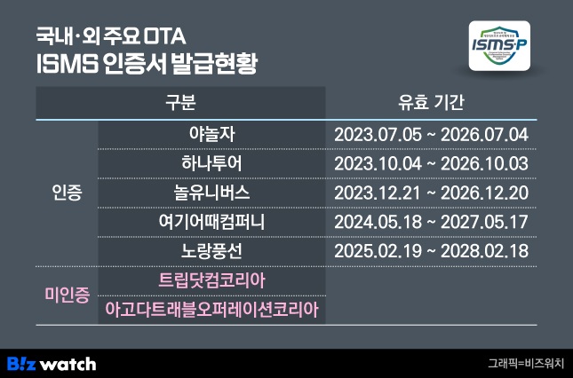 국내 OTA에 대한 '역차별'이라는 목소리도 나온다. 하나투어, 노랑풍선, 놀유니버스, 야놀자, 여기어때 등 국내 주요 여행사들은 모두 ISMS 인증을 받았다.