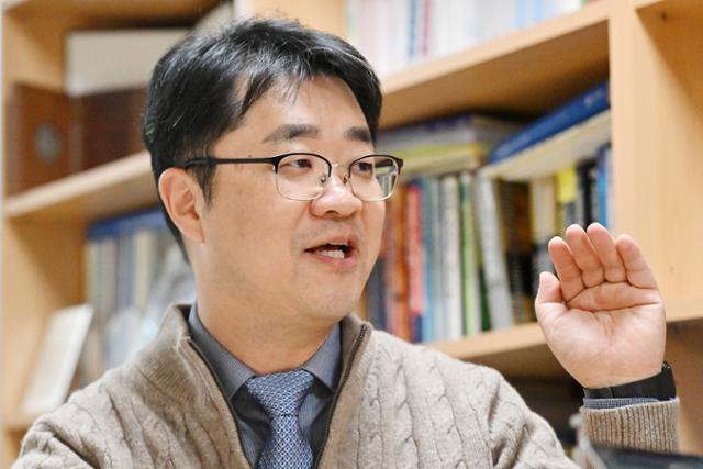 '내 돈으로 내 가족과 내가 잘 산다!' 금융·부동산부터 절약·절세까지... 복잡한 경제 쏙쏙 풀어드립니다.노건엽 금융제도연구실장이 28일 서울 영등포구 여의도 보험연구원에서 본보와 인터뷰를 하고 있다. 민경석 기자 |
