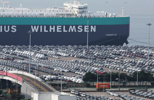 30일 경기도 평택항에 수출용 자동차가 세워져 있다. 연합뉴스 |