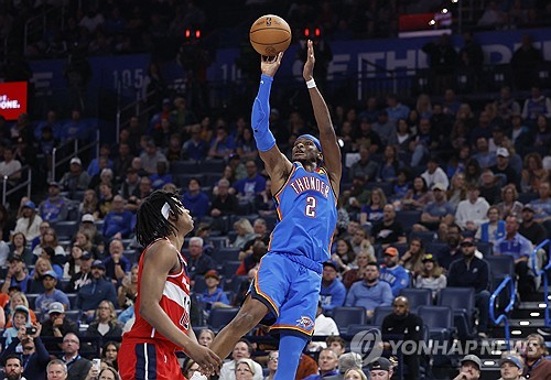 (서울=연합뉴스) 설하은 기자 = 지난 시즌 미국프로농구(NBA) 정규리그와 챔피언결정전 최우수선수(MVP)를 휩쓴 샤이 길저스알렉산더가 오클라호마시티 선더의 개막 6연승에 앞장섰다.