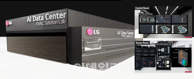 LG전자가 보유한 냉각 솔루션과 친환경 열회수 시스템, 고효율 직류(DC) 전력 솔루션 등을 활용해 가상으로 구축한 AI 데이터센터 모습. LG전자는 칠러, 액체냉각 솔루션 등을 앞세워 AI 데이터센터에서 사업기회 확보를 추진한다.(사진=LG전자) |