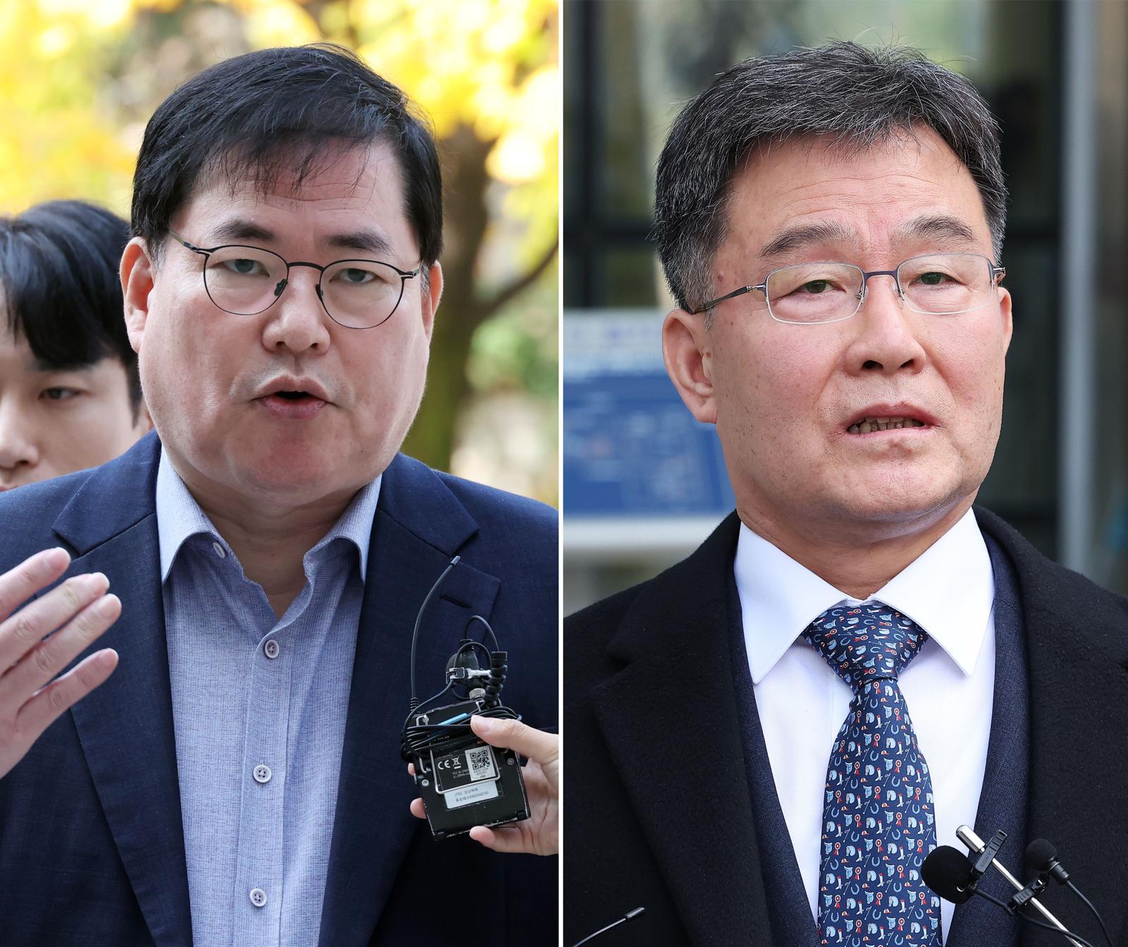 화천대유자산관리 대주주 김만배 씨(오른쪽)와 유동규 전 성남도시개발공사 기획본부장이 31일 서울 서초구 서울중앙지법에서 열린 대장동 개발 비리 배임 사건 선고 공판에 출석하고 있다. 뉴스1 |
