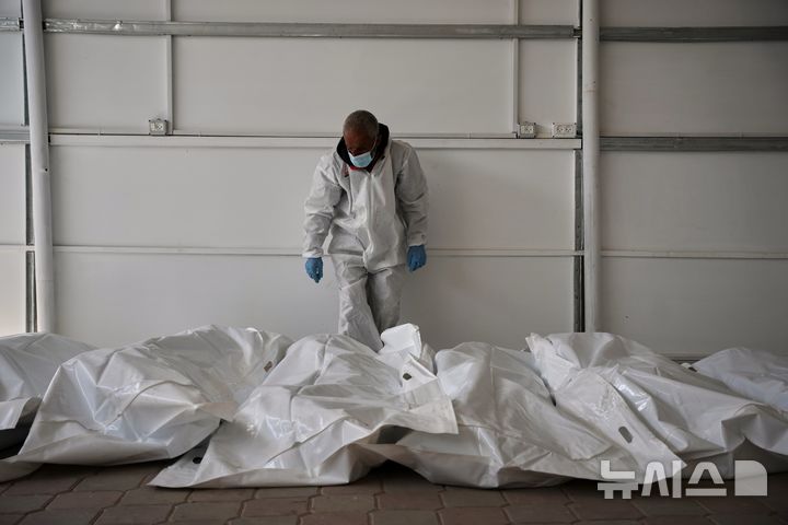 [AP/뉴시스] 31일 가자 칸유니스 소재 나세르 병원 창고에 이스라엘이 인계 반환한 팔레스타인 사람 시신들이 놓여 있다 |