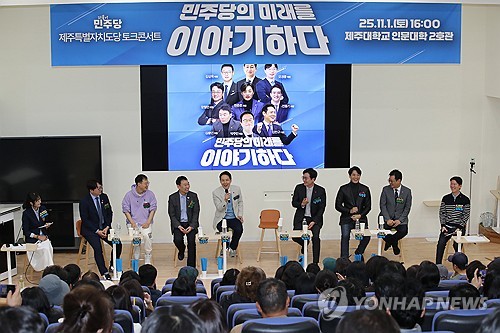 1일 오후 제주대 인문2호관에서 민주당 제주도당 주최로 열린 '민주당의 미래를 이야기하다' 토크콘서트엔 김한규, 박주민, 김용민, 장철민, 한준호, 김상욱, 김태선, 모경종 등 의원 8명이 참석해 300여명의 당원들과 만났다.