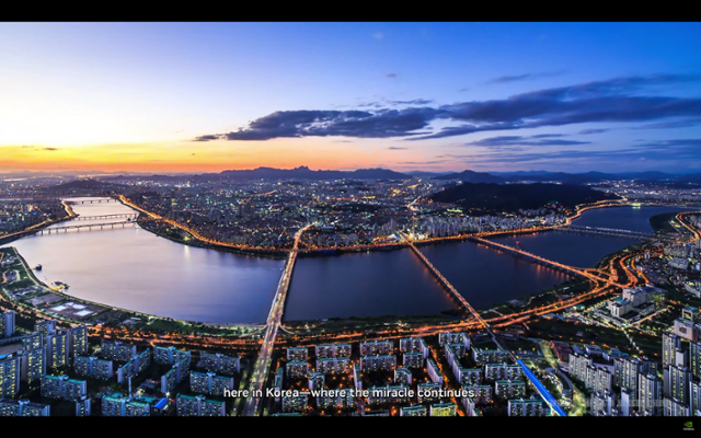 10월 31일 엔비디아 공식 유튜브에 공개된 '한국의 다음 산업혁명'이라는 제목의 동영상 말미에 서울의 야경과 함께 '(기적이 계속되는) 바로 이곳 한국에서'라는 자막이 나오고 있다. 엔비디아 유튜브 캡처 |