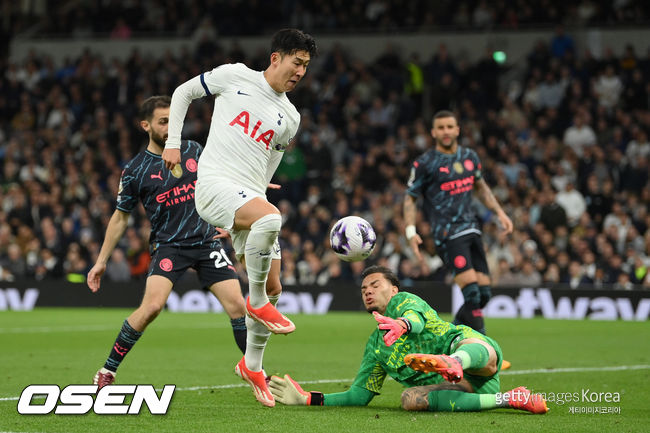 문제의 경기는 2024년 5월,프리미어리그 34라운드 순연 경기였다. 무대는 토트넘 홋스퍼 스타디움. 맨시티가 1-0으로 앞서던 후반 41분, 손흥민은 완벽한 역습 상황에서 수비 라인을 따돌리고 에데르송과 1대1 기회를 맞이했다.