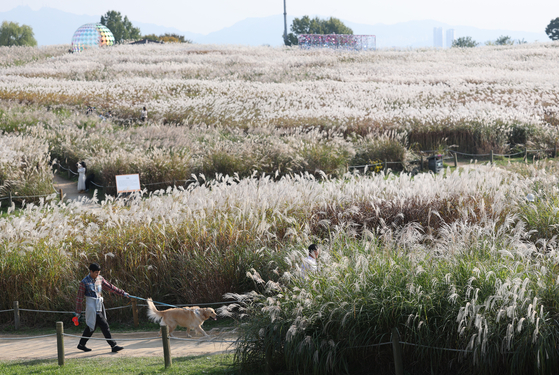 서울 마포구 하늘공원을 찾은 시민들이 억새밭 풍경을 감상하고 있다. 연합뉴스 |