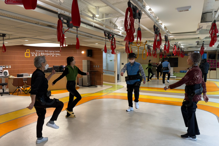 엔젤로보틱스 '엔젤슈트 H10'을 착용한 어르신들이 사용법을 숙지하고 있다. 엔젤슈트 H10은 경증 보행 장애와 고령자를 위해 일상생활 보행 보조용으로 개발된 로봇이다. 엔젤로보틱스 제공 |