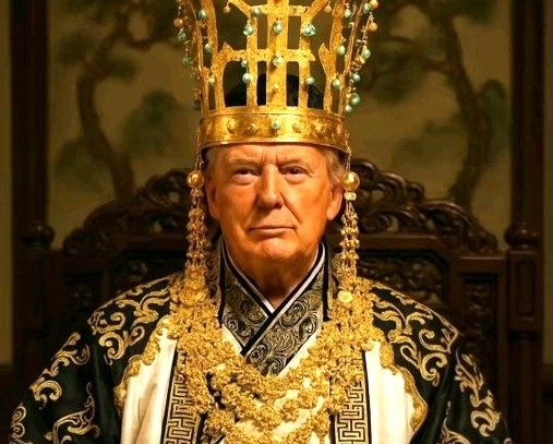 도널드 트럼프 미국 대통령이 천마총 모양 금관을 쓰고 한국 고대 의복을 입고 있는 합성 사진. X 캡처 |