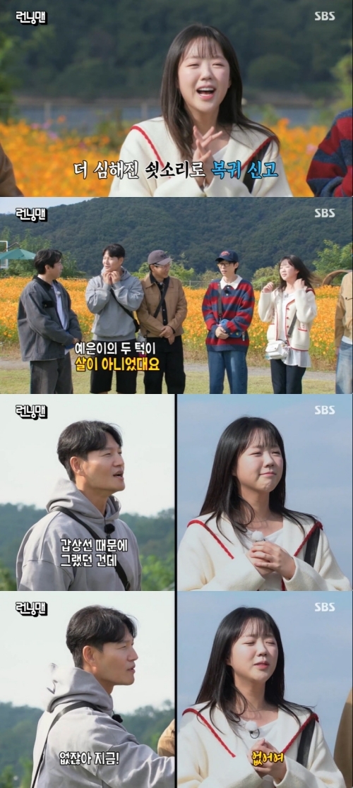 김종국은 "우리가 사과를 했다. 예전에 지예은의 투턱이 살이 아니었다고 한다. 갑상선 질환 때문에 그랬던 거다. 그래서 지금은 투턱이 없다"고 설명했다. 유재석은 "건강을 회복하니 좋다"며 기쁜 마음을 드러냈다.