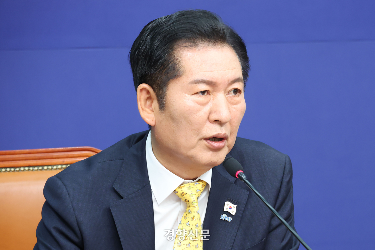 정청래 더불어민주당 대표가 3일 국회에서 열린 최고위원회의에서 발언하고 있다. 한수빈 기자 |