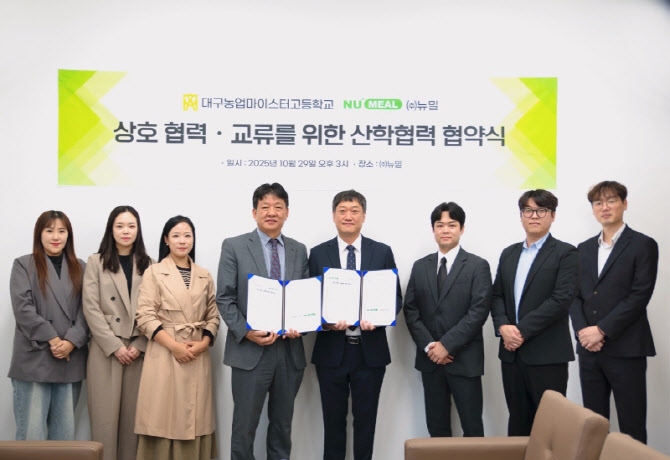 대구농업마이스터고와 건강기능식품 OEM 전문기업 (주)뉴밀은 지난달 29일 실무형 인재 양성과 청년 일자리 창출을 위한 산학협력 협약을 체결했다.