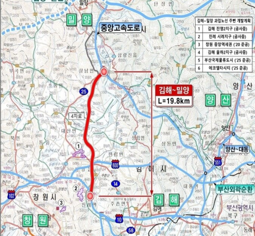 김해 진례~밀양 상남 19.8㎞ 신설
