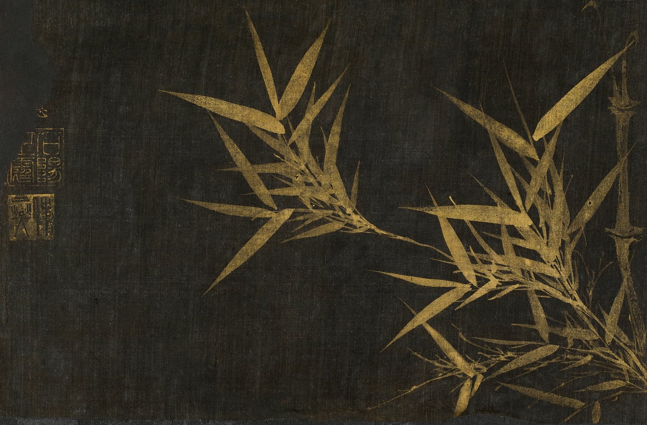 이정, ‘신죽(新竹)’. 조선 1594, 검은 비단에 금니. 보물로 지정된 ‘삼청첩’ 중 한 그림이다. /간송미술문화재단 |