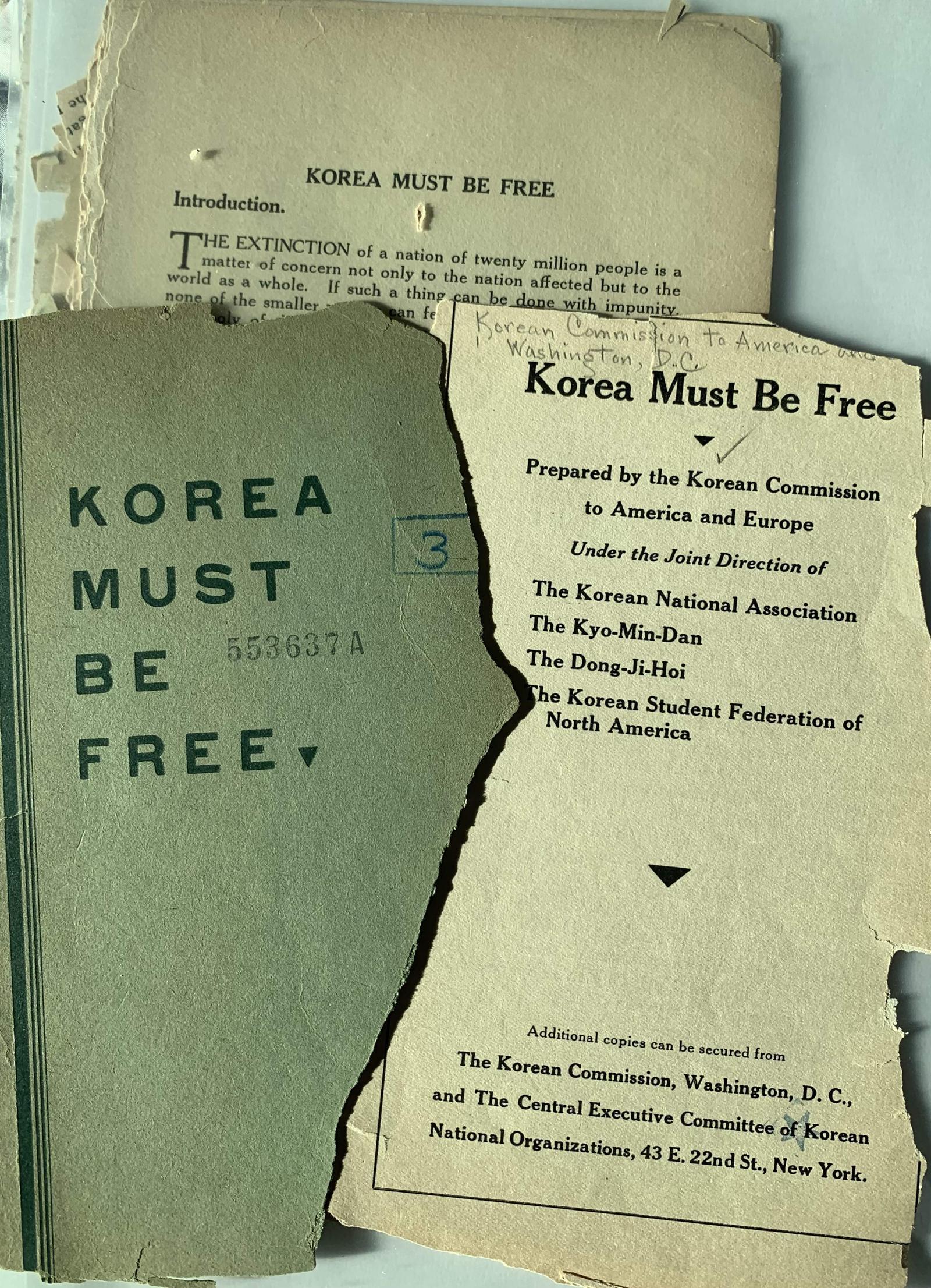 ‘KOREA MUST BE FREE’는 워싱턴을 중심으로 활동하던 △구미주차한국위원회 △대한인국민회 △교민단 △동지회 △북미한인유학생회 등 5개 단체가 공동으로 제작한 것이다.