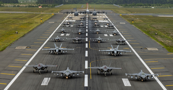 2020년 군산 공군기지에 집결한 미 공군과 해군 전투기들. 미 공군 |