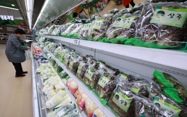 지난달 22일 서울의 한 대형마트에서 소비자가 상추 등 채소를 고르고 있다. |