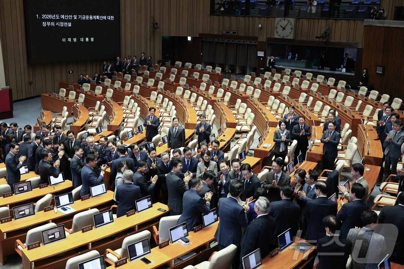 (서울=뉴스1) 국회사진기자단 = 이재명 대통령이 4일 오전 국회 본회의장에서 내년도 예산안 관련 시정연설을 하기 위해 본회의장으로 들어오고 있다. 2025.11.4/뉴스1