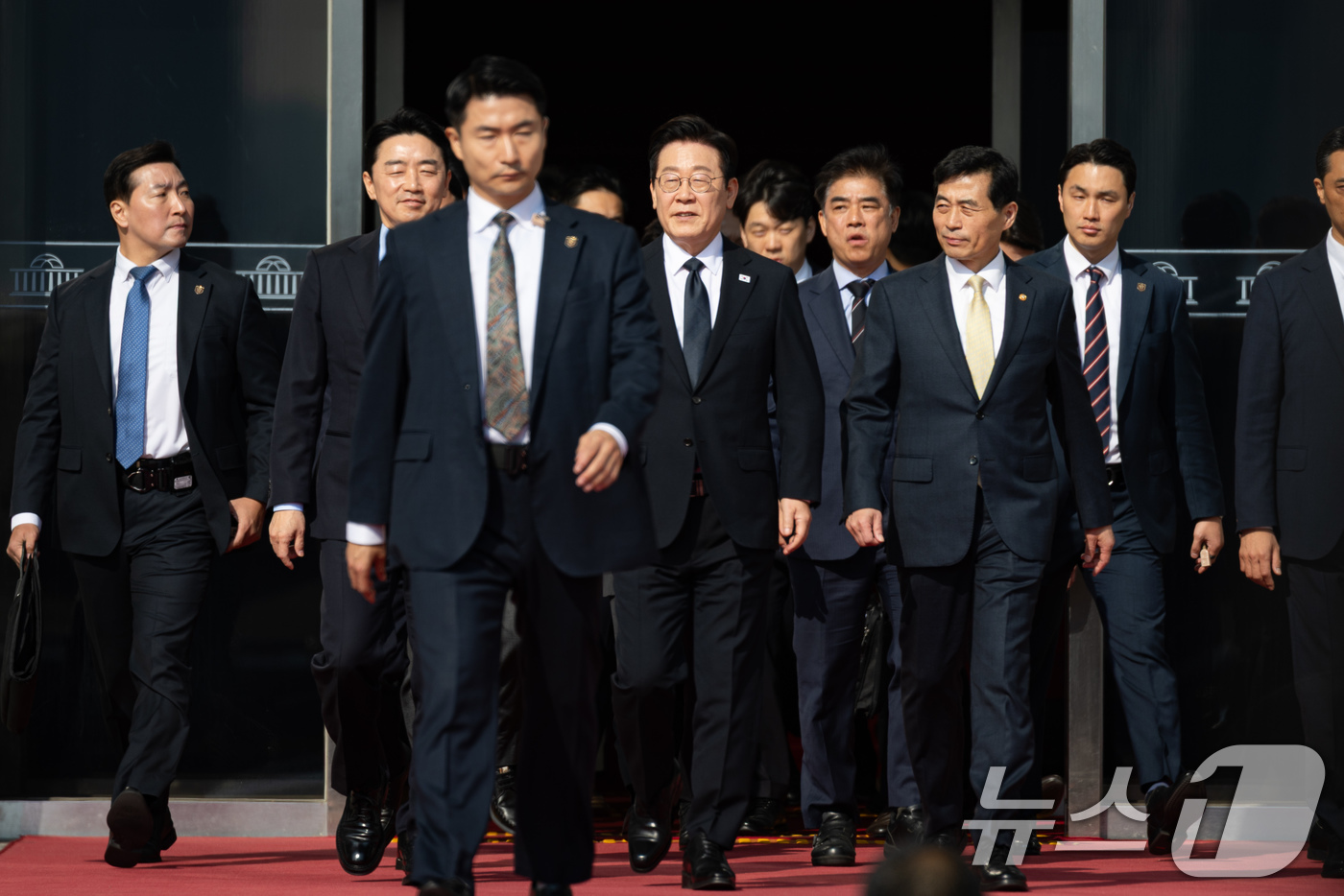(서울=뉴스1) 유승관 기자 = 이재명 대통령이 4일 서울 여의도 국회에서 2026년도 예산안 및 기금운용계획안에 대한 시정연설을 마친 후 본청을 나서고 있다. 2025.11.4/뉴스1