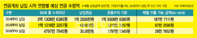 50만원씩 35세부터 월188만원, 45세 시작땐 67만원