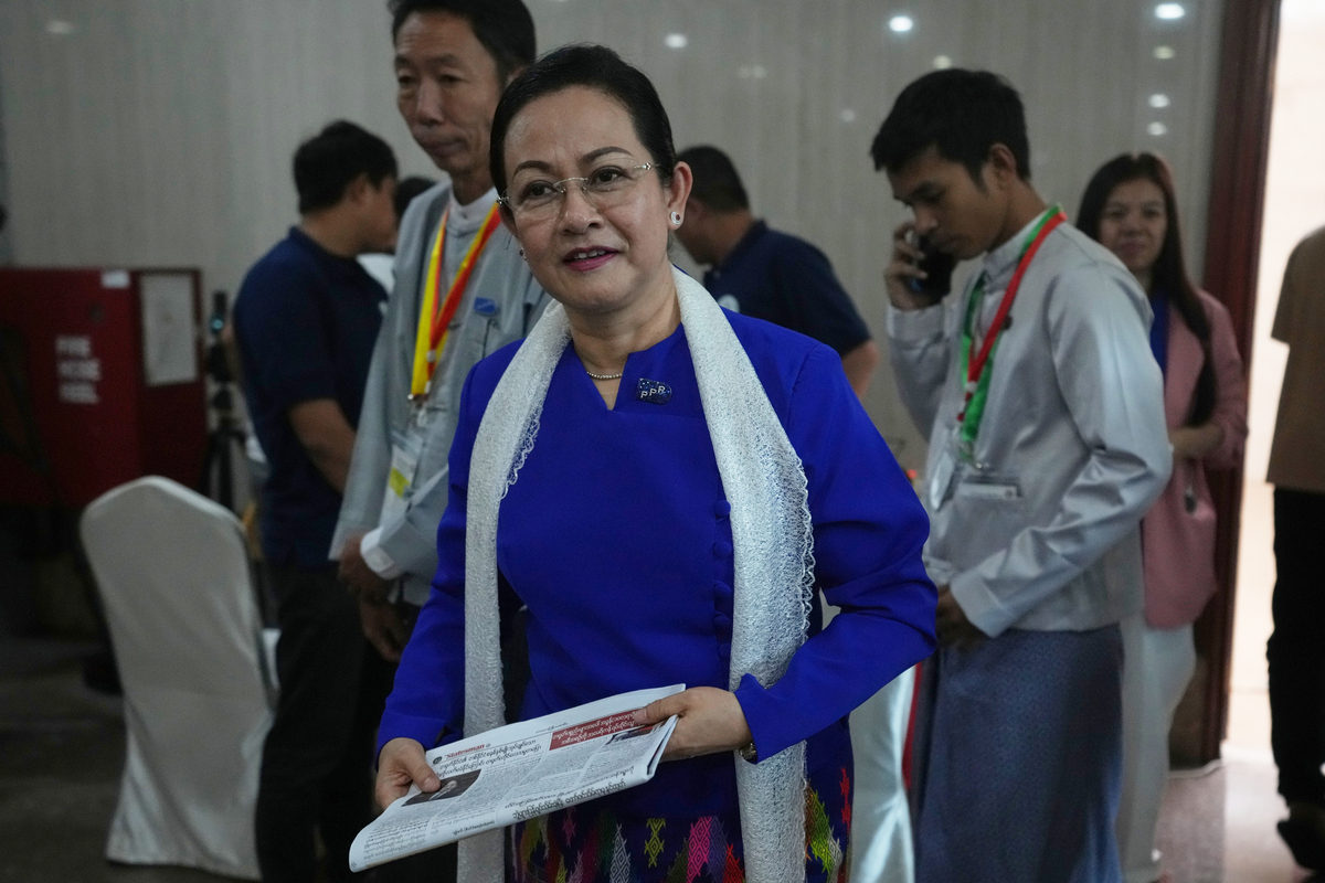 테트 카잉 미얀마 인민개척당(PPP) 대표가 지난 1일(현지시간) 양곤의 한 호텔에서 열린 선거 선언문 발표식에 참석해있다. AP연합뉴스 |