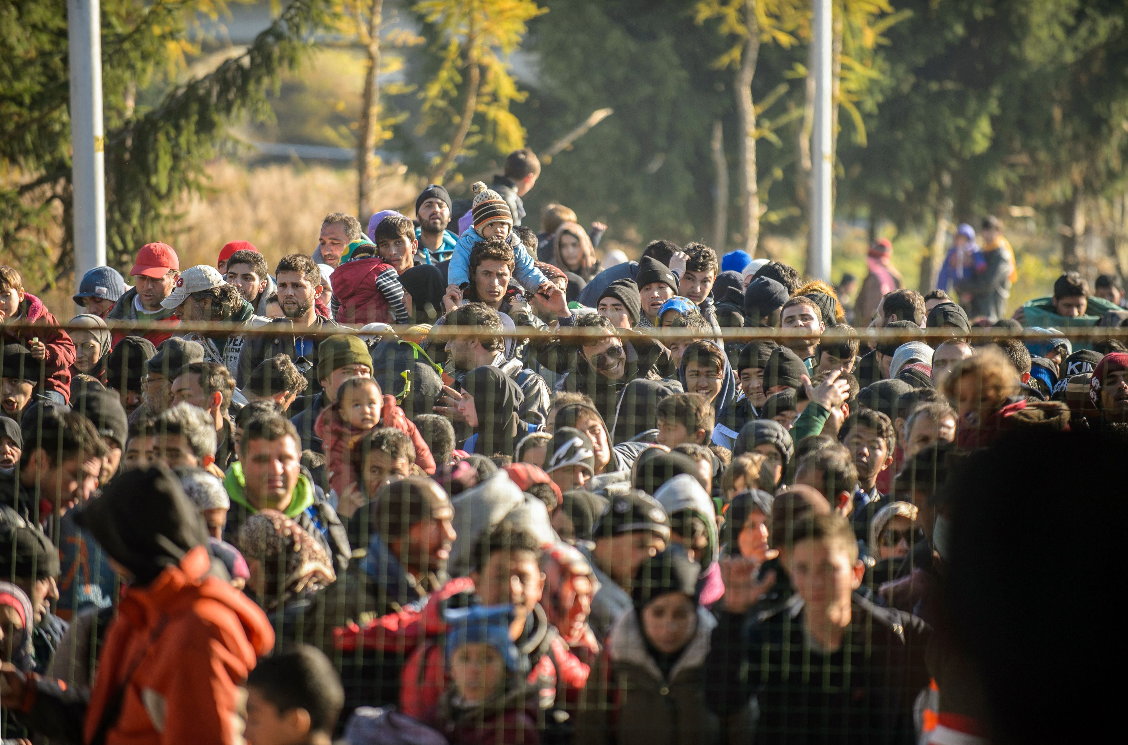 2015년 11월 3일 슬로베니아-오스트리아 국경을 넘기 위해 기다리는 시리아, 아프가니스탄 난민들./ AFP연합뉴스 |