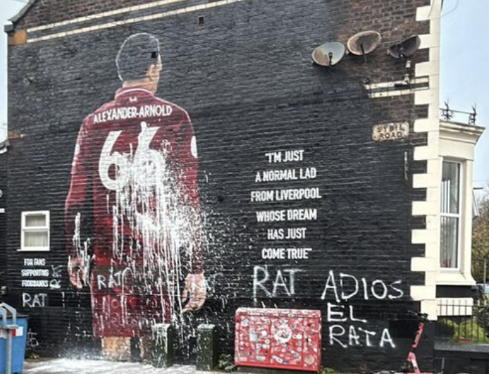 리버풀 지역 언론 '리버풀 에코'의 4일(한국시간) 보도에 따르면, 안필드 인근에 설치된 알렉산더-아놀드의 벽화가 경기 전날 밤 누군가에 의해 심각하게 훼손됐다.