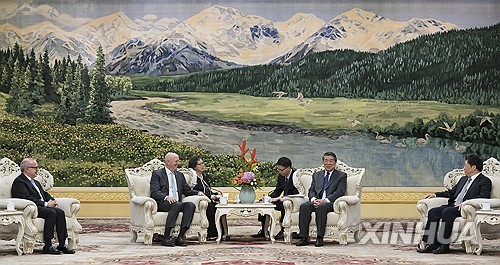 데이비드 솔로몬 골드만삭스 CEO(왼쪽)와 허리펑 중국 국무원 부총리 회동 |