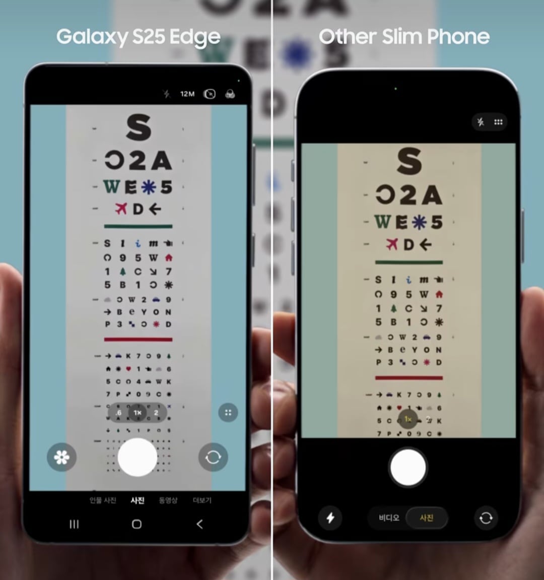 삼성전자가 자사 인스타그램에 게시한 갤럭시S25 엣지 광고. 엣지와 아이폰 에어로 추정되는 기기를 나란히 배치해 카메라 성능을 비교했다./삼성전자 인스타그램 캡처 |