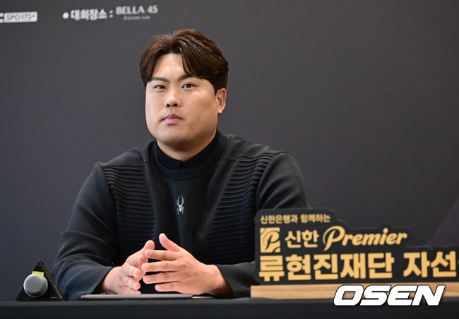 4일 오전 강원도 횡성군 벨라45 컨트리클럽에서 신한 Premier 류현진재단 자선골프대회가 열렸다. 류현진 이사장이 기자회견을 갖고 있다. 2024.11.04 /OSEN DB |