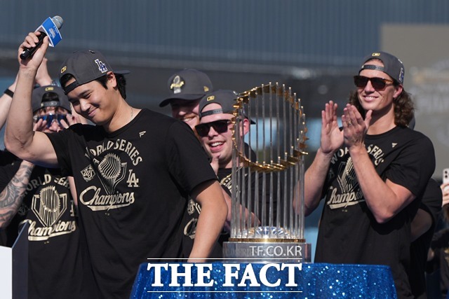 토론토에서 로스앤젤레스로 돌아오는 임대 비행기 안에서 선수들 한 명 한 명이 우승트로피를 안고 기념사진을 찍더니 4일 퍼레이드와 다저스타디움 축승 행사로 25년 만에 이룬 월드시리즈 2연패의 여운을 즐겼다. 무려 5만 2700명이 티켓을 구입해 만석을 이룬 다저스타디움 축승 행사에서는 오타니, 야마모토, 프리먼, 그리고 데이브 로버츠 감독까지 모두가 한 입처럼 "둘보다 셋! 3연패를 향해 출발!"을 외쳤다.