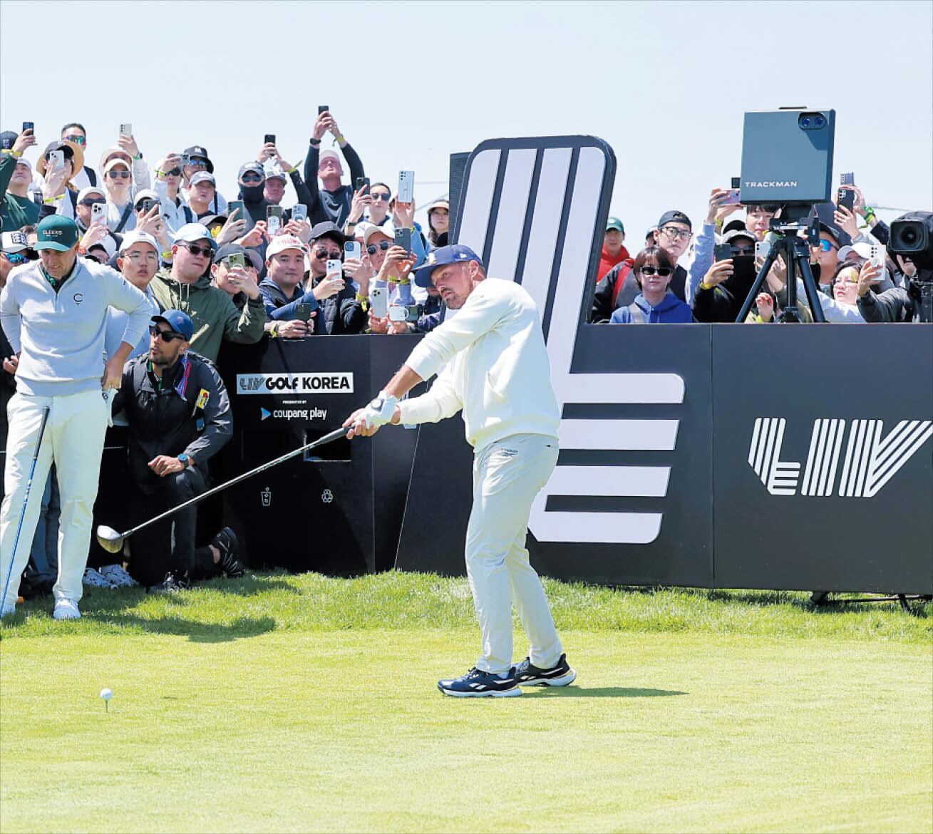 지난 5월 인천에서 열린 LIV 골프 코리아 대회에서 티샷을 준비 중인 브라이슨 디섐보./뉴스1 |