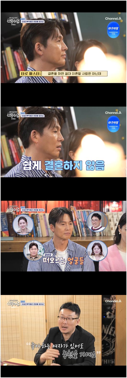 타로 전문가는 두 사람의 궁합에 대해 라면서 “이 궁합은 에너지가 너무 좋아서, 나중에 참고하세요. 지금은 모르셔도 됩니다”라며 낯뜨거운 소리를 해 박해리와 이정진을 부끄럽게 만들었다. 문세윤은 “이보다 좋은 말이 있었을까?”, 이다해는 “환상적인 궁합이라고 하는 거 아니냐”라며 천연덕스럽게 대꾸했다. /osen_jin0310@osen.co.kr