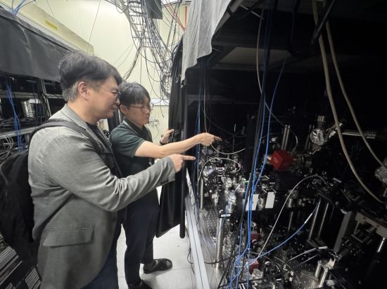 문 박사가 장막을 거두자 나타난 장비는 흔히 보던 커다란 샹들리에가 있는 초전도체 방식의 양자컴퓨터와는 전혀 달랐다. 초저온을 구현하는 장비와 실리콘 웨이퍼 대신 '광 집게'라 불리는 강력한 레이저가 진공 속 원자(큐비트·양자 정보 단위)들을 붙잡아 배열시키고 있는 모습은 복잡한 광학장비와 레이저 기술을 기반으로 한다. 초저온을 유지해야 할 필요도 없다. 초전도체 양자컴퓨터의 가동을 위해 액화헬륨가스를 공급하는 장비와 '삑삑' 하는 소리가 보이지도, 들리지도 않았다.