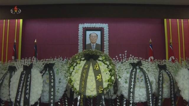 북한은 6일 김영남 전 북한 최고인민회의 상임위원장의 장의식이 전날 평양에서 국장으로 엄숙히 거행됐다고 보도했다. 김정은 북한 국무위원장도 영결식에 참석해 애도를 표했다. /뉴시스.조선중앙TV 갈무리 |