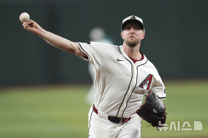 [마이애미=AP/뉴시스] 애리조나 다이아몬드백스 선발 투수 메릴 켈리가 15일(현지 시간) 미 플로리다주 마이애미에서 열린 2025 메이저리그 마이애미 말린스와의 경기 1회 말 투구하고 있다. KBO 역수출의 상징 켈리는 6이닝 3피안타 9탈삼진 1실점 1사구를 기록하고 팀이 10-4로 승리하면서 승리 투수가 됐다. 2025.04.16. |
