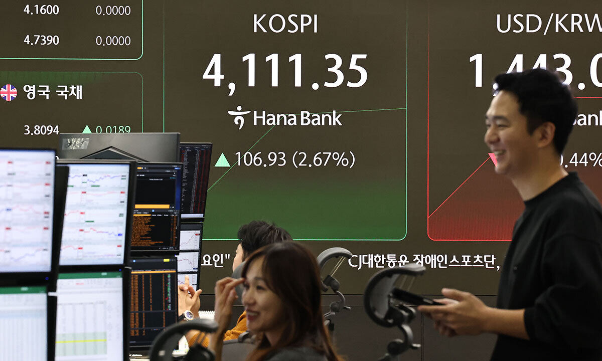 6일 오전 10시48분 기준 코스피는 전장보다 22.59포인트(0.56%) 오른 4027.01이다. 코스피는 전장보다 88.04포인트(2.20%) 오른 4092.46으로 출발해 한때 4111.96까지 올라 한때 4100선을 회복했다. 하지만 이후 외국인 매도세에 마이너스로 전환하며 3985.29를 기록하며 4000대가 깨졌다가 다시 상승 중이다.
