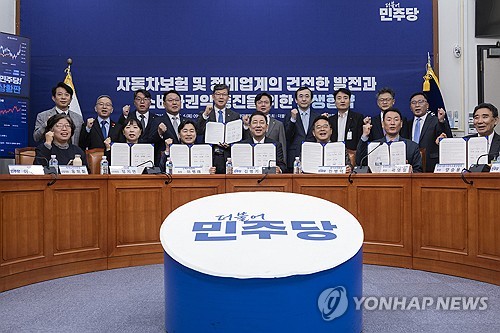 (서울=연합뉴스) 박재하 기자 = 더불어민주당 '을(乙)지키는민생실천위원회'(을지로위원회)는 6일 자동차 정비업계의 수리비 보증 문제를 해결하기 위해 보험사와 자동차 정비업계 간 상생 협약식을 개최했다.