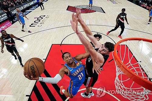 디펜딩챔피언 오클라호마시티는 6일(한국시간) 미국 오리건주 포틀랜드 모다 센터에서 열린 2025-2026 NBA 정규리그 원정 경기에서 포틀랜드 트레일블레이저스에 119-121로 졌다.
