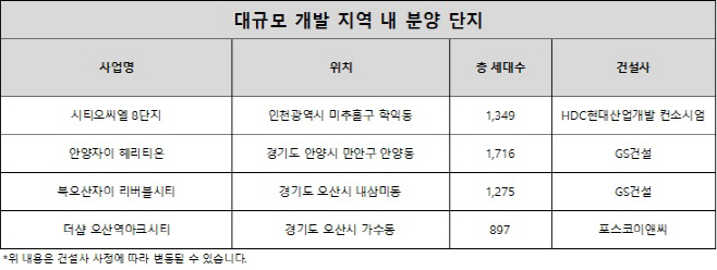 대규모 개발지역 내 아파트는 분양시장에서도 높은 인기를 끌고 있다. 한국부동산원 청약홈에 따르면, 올해 7월 검단신도시에서 분양한 '검단호수공원역 중흥S-클래스'는 522가구(특별공급 제외) 1순위 모집에 6831명이 지원해 평균 13.09대 1의 경쟁률을 기록했다.